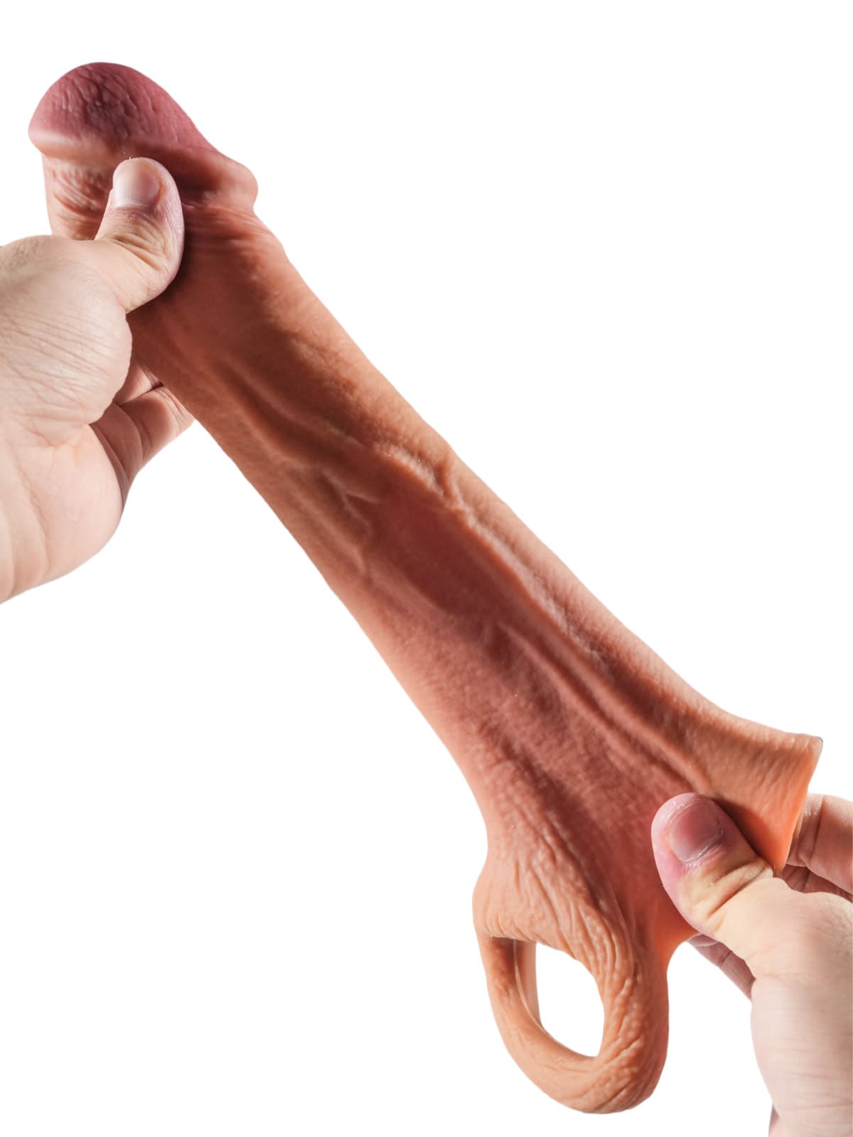 Unleash the full potential of your sexual experience with our Perfect 8” Length x 4.9” Girth M/L Size Open Tip Penis Sleeve. Made of soft and flexible silicone, this condom extender provides a comfortable fit and heightened pleasure for both partners. The soft glans design reduces discomfort and prevents premature ejaculation. Choose from the M/L model with an opening for ejaculation, Indulge in the smooth and silky touch for a truly satisfying encounter.